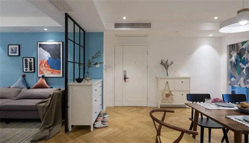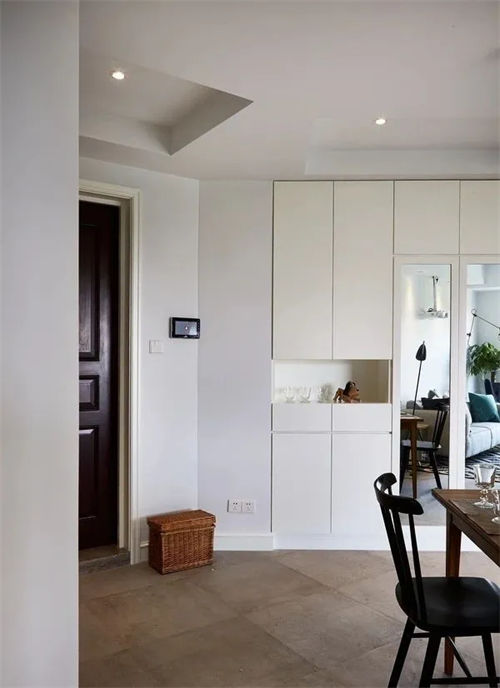入戶就是一拐角,將墻面空間充分利用起來(lái),定制多功能L型玄關(guān)柜,不影響采光的情況下,將空間充分利用起來(lái)。