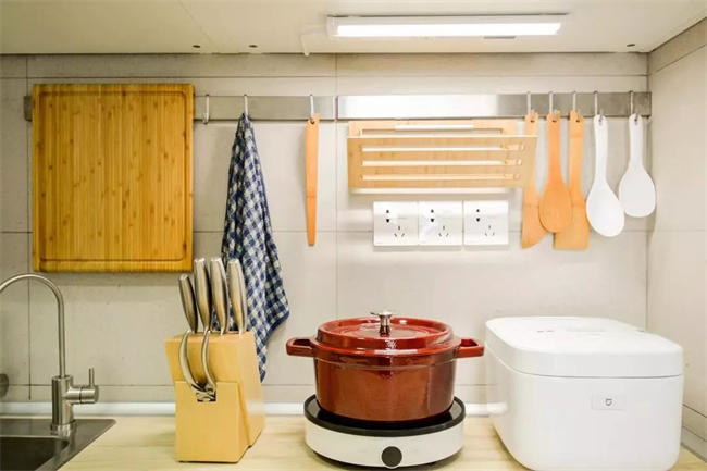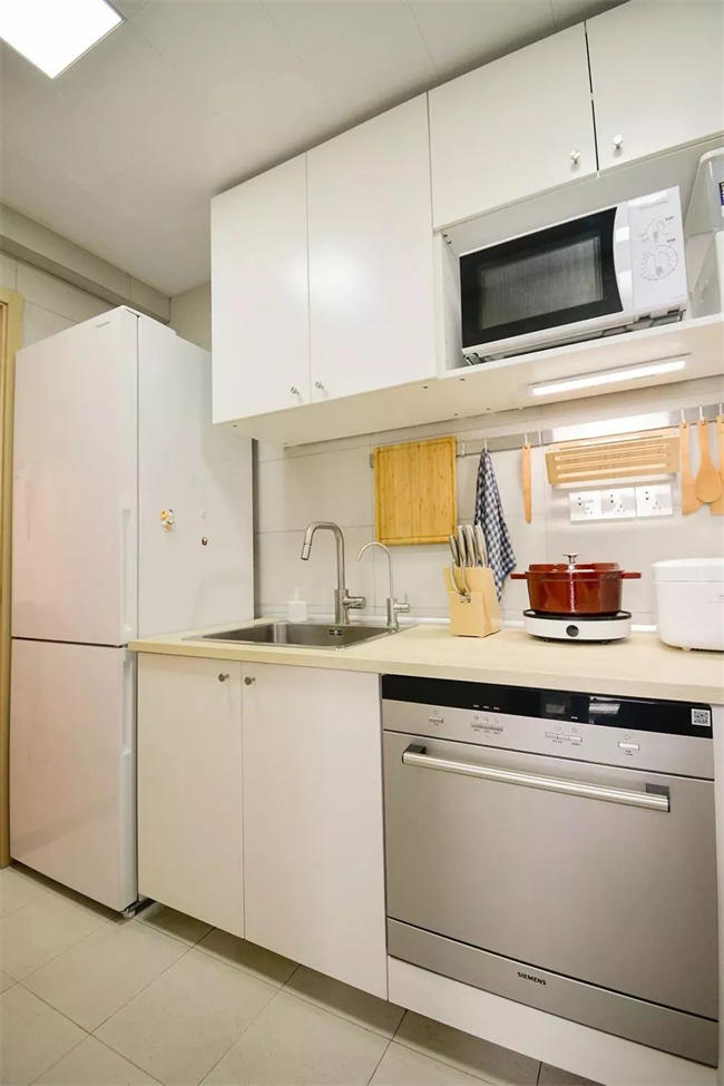 ▲ 廚房面積較小,用白色來裝飾營(yíng)造一種明亮開闊的視覺效果。