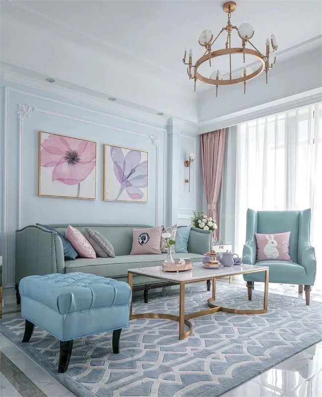 如果墻面做了果凍色系,例如天空藍(lán)、檸檬黃、牛油果綠等,窗簾色彩搭配建議選擇同樣果凍色來搭配,會(huì)讓整個(gè)空間更青春活力。