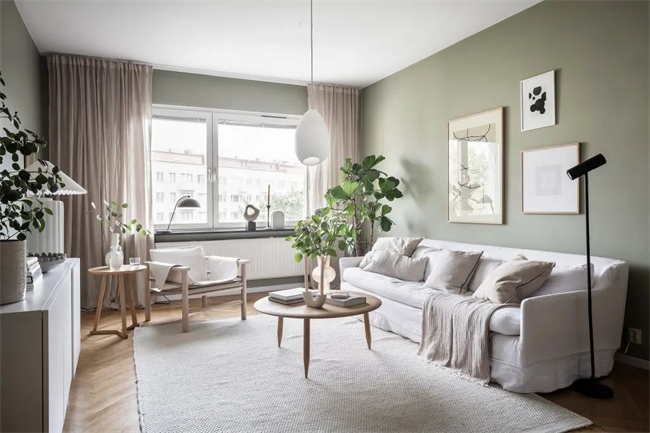 1、同色系墻面、窗簾,是一種保險(xiǎn)的搭配方式,優(yōu)點(diǎn)是讓空間的色調(diào)形成統(tǒng)一,擴(kuò)展了視覺空間,家仿佛變得寬闊了;缺點(diǎn)是略顯單一,少了一些新意。