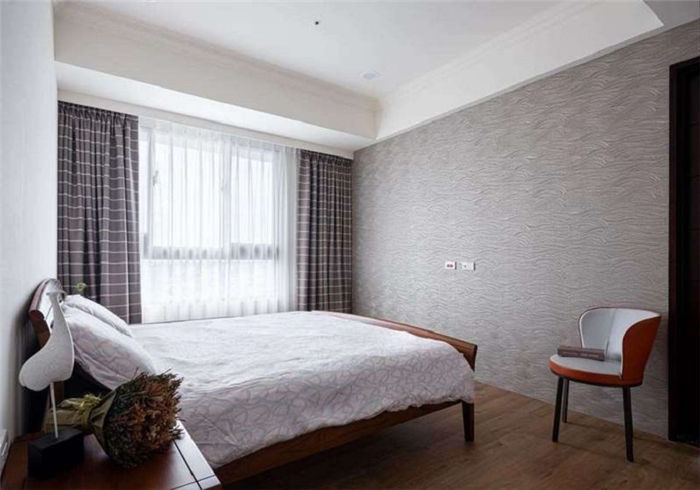 顏色造型一致,餐廳延續(xù)整體感 餐廳則有收納量極大的餐柜,顏色與造型一致呼應(yīng)客廳玄關(guān)柜,中空平臺(tái)鑲嵌鏡面,延伸景深并制造出映照的趣味,轉(zhuǎn)角則以三角邊柜圓弧收邊,讓長者幼兒行走避免碰撞,更為安全。 主臥著重舒眠,結(jié)合機(jī)能與品味 長輩主臥以素樸舒眠為主,灰色云紋壁紙十分雅致,床頭后方則隔出獨(dú)立更衣室,空間比例更為協(xié)調(diào),屋主能舒適躺在床上看電視。