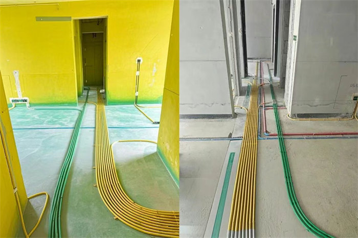 △線管排布感觀橫平豎直,底盒固定后沒有超出原始墻面,單一和聯(lián)排底盒水平無誤差,合格。