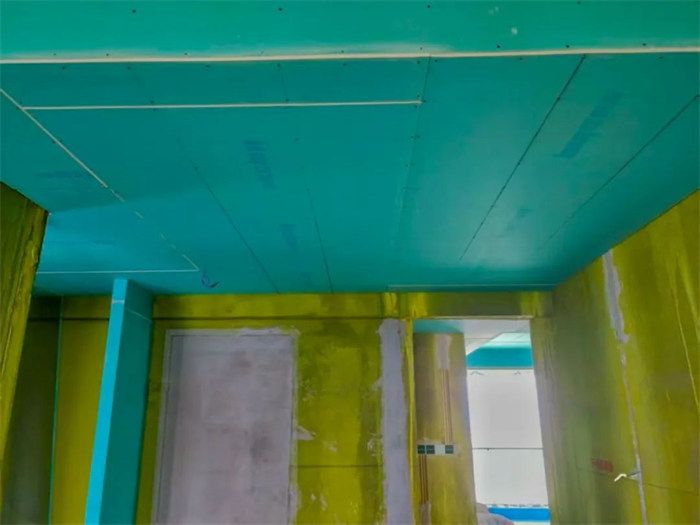 △吊頂平梁,梁下過一層石膏板,厚度10mm,縫隙用發(fā)泡膠軟連接,所有石膏均要求切割平直,陽(yáng)角不允許用石膏板原邊,合格。