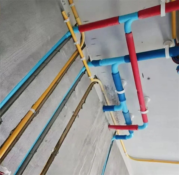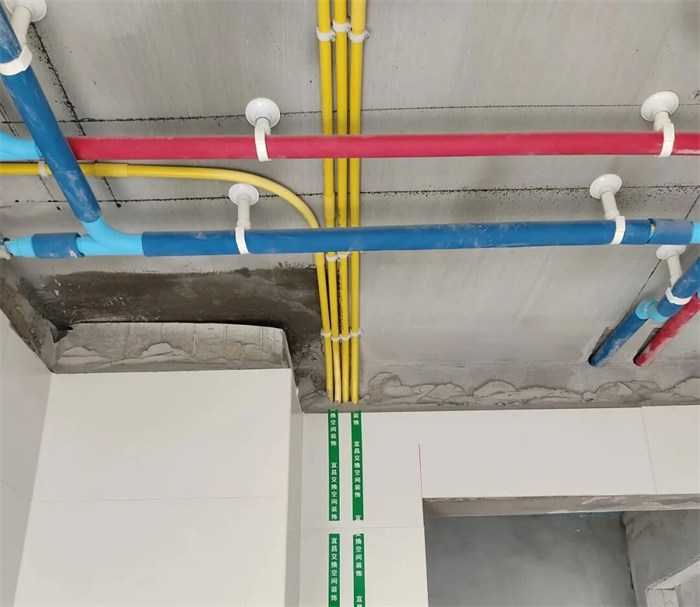 △水管排布感觀橫平豎直,墻體線槽內(nèi)給水管只能用整管,不允許用直接連接,合格。
