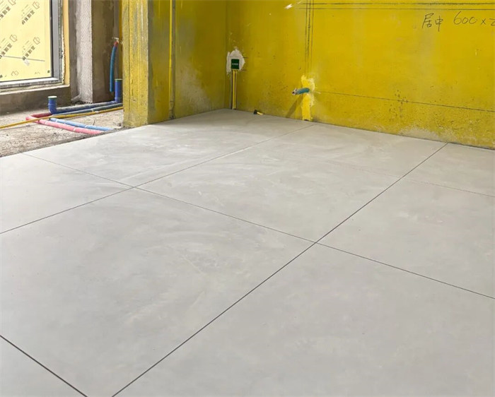 △我們的瓦工師傅正在貼磚,每鋪一塊瓷磚,都會用橡皮錘反復敲實,確保瓷磚和地面貼合緊密。