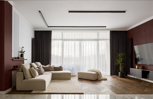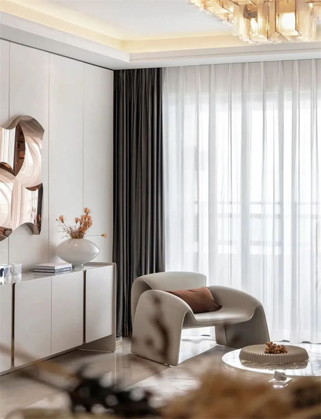還可以通過上淺下深這種,淺色多于深色的漸變窗簾,進(jìn)行視覺上的優(yōu)化。