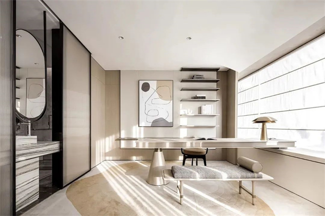 家具也起到重要的作用,太過于笨重的家具會顯得空間擁擠,最好是制適宜的輕量型家具,營造空間靈動感。選擇低矮的家具,能讓家具和天花板之間的空間更大,會營造出大空間的視覺錯覺。