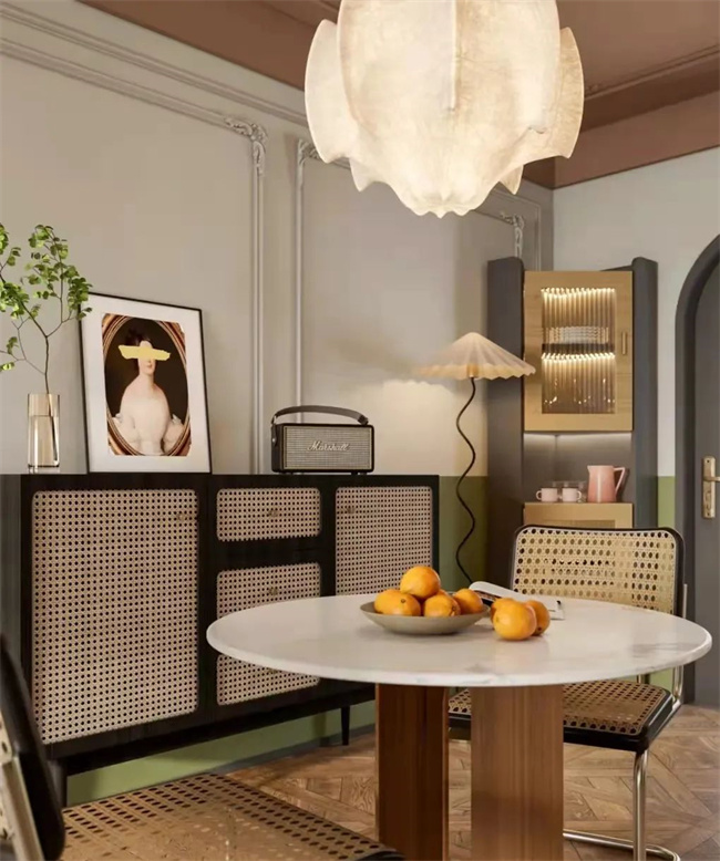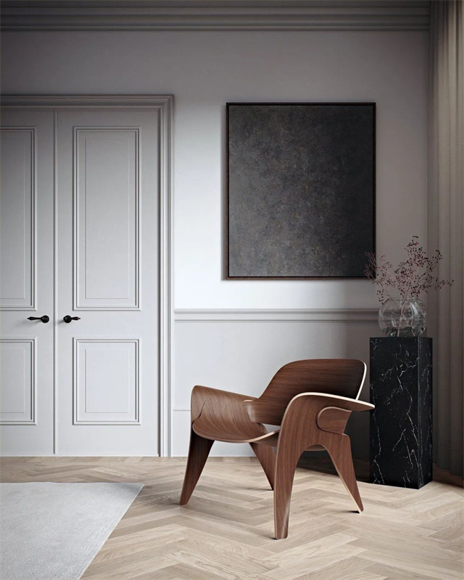 當(dāng)然,高踢腳線設(shè)計或墻裙設(shè)計也能營造挑高的視覺效果,能把墻分為上下兩部分,就能起到墻面拉伸的作用。