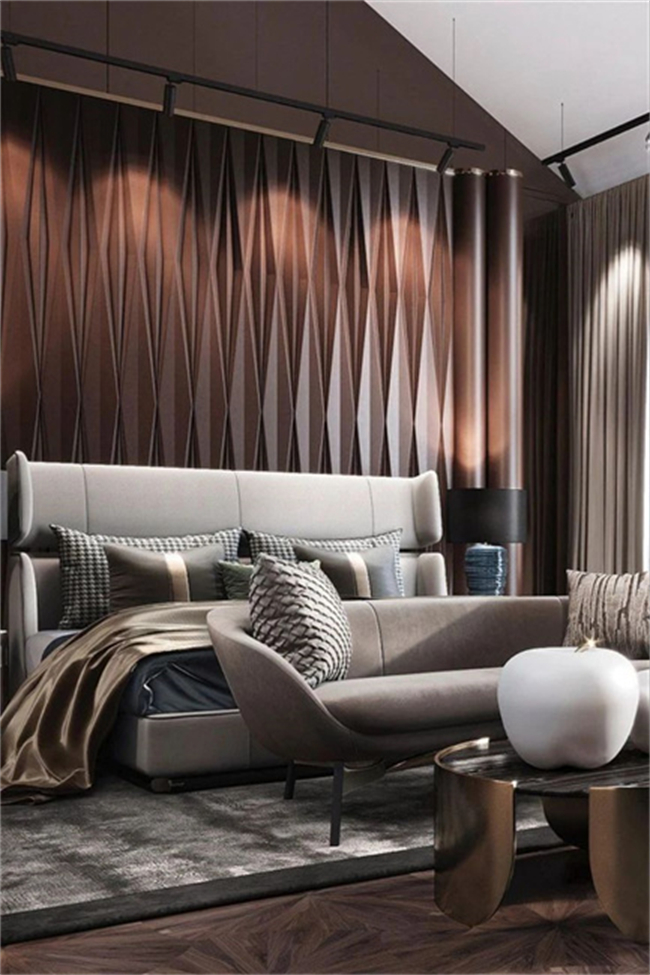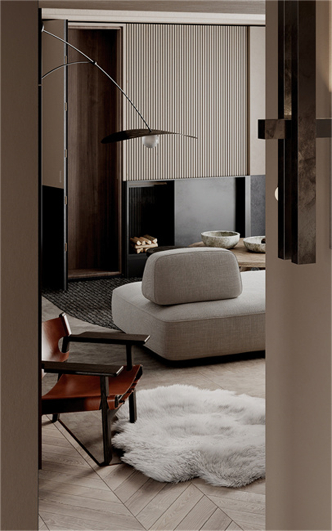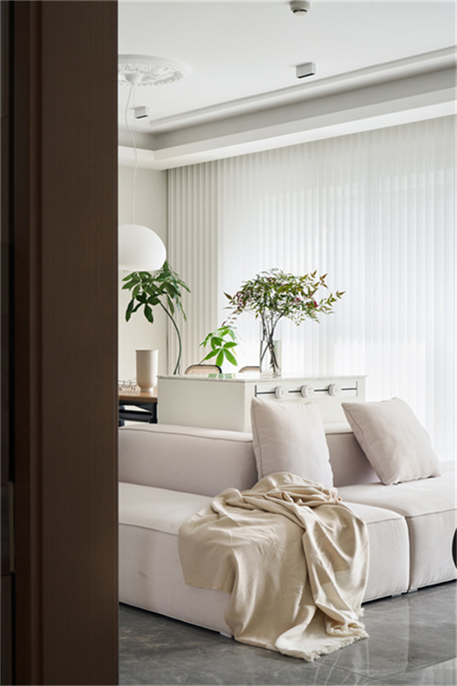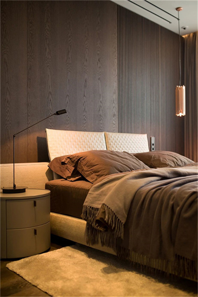通過絨布材質(zhì)的床品、地毯、窗簾等單品的調(diào)整既能緩解冰冷感,又能增加裝飾感,塑造一種親近自然的溫馨與舒適。