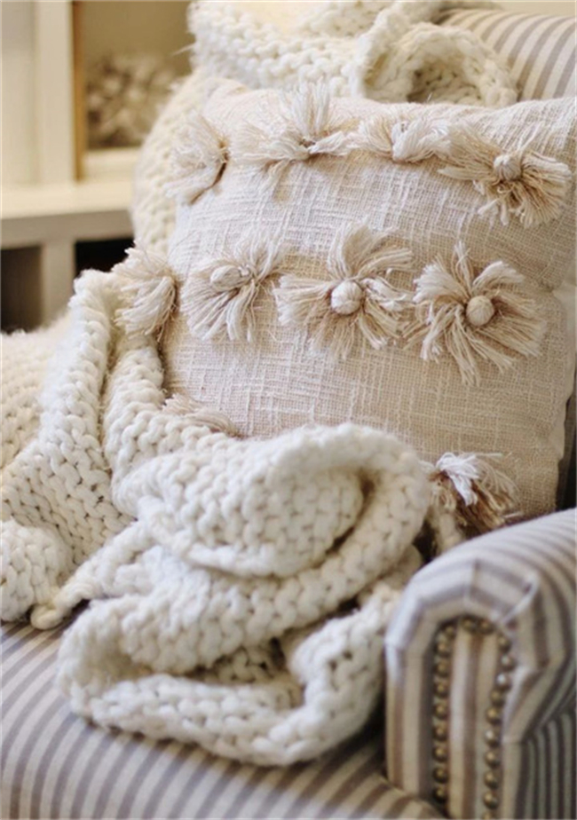 觸覺是最能感受溫度的方式,比起硬朗的木質(zhì)、冰冷的皮質(zhì),選擇柔軟的布藝以及含有絨毛、毛線等天然且厚重材質(zhì)的家居產(chǎn)品,不但可以增加溫暖氛圍,精美的花色圖案也能輔助驅(qū)走冬日的陰沉。