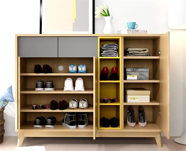 4、鞋柜層板分高矮,最好設(shè)置成活動(dòng)的,根據(jù)鞋子高度來(lái)調(diào)整。