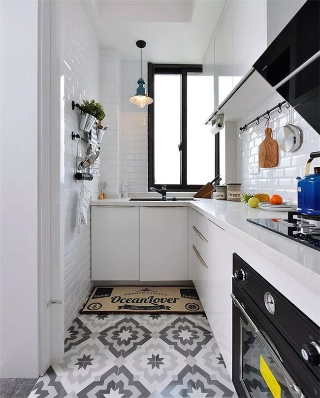 12、櫥柜選嵌入式的,將烤箱、微波爐或其他不常用的物品收納起來(lái),讓廚房整體干凈整潔。