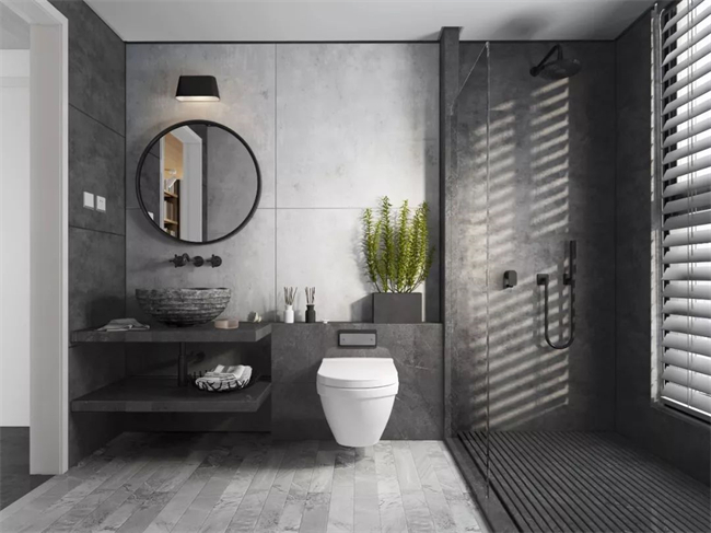 29、壁掛馬桶,和入墻式水龍頭原理一致,不落地的壁掛馬桶是公認(rèn)的「高顏值」浴室神器,下面懸空可以打掃,因此沒(méi)有衛(wèi)生死角。