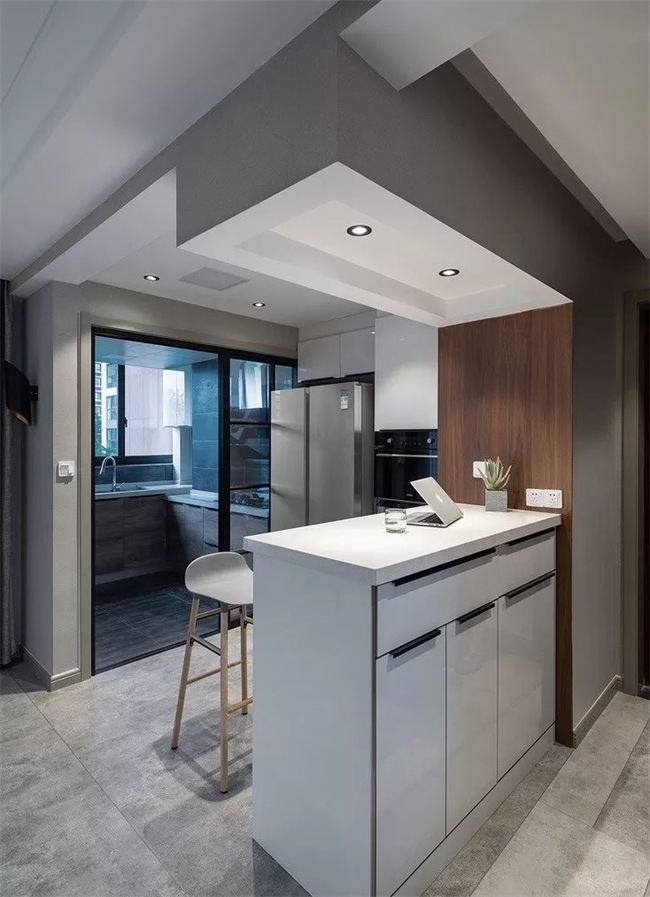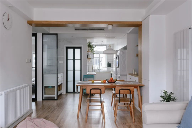 餐廳和廚房可以通過簡單的一道門分隔,這樣廚房不會占有太大空間,但是區(qū)域劃分明確。節(jié)省了很大的空間。