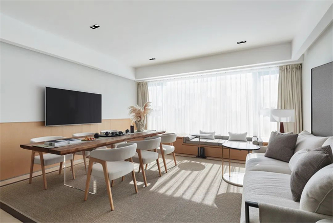 很多使用時的功能可以合并的盡量合并,比如客廳和餐廳可以合二為一,次臥和書房合二為一。