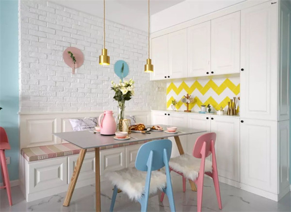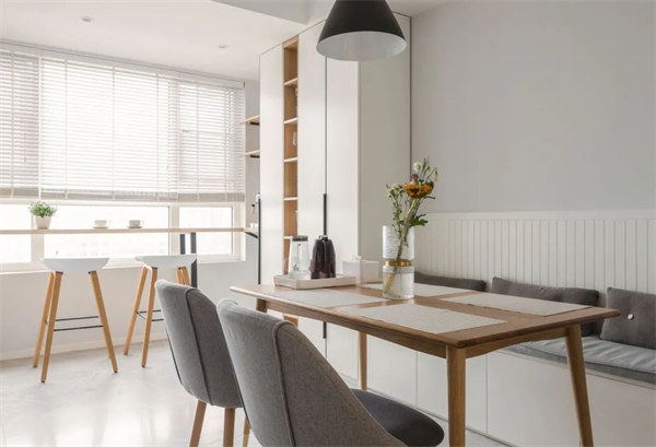 卡座在解決就餐、辦公問(wèn)題的同時(shí),還能憑空增加收納空間,既讓空間布局更趨于合理,同時(shí)還讓家增添了用餐、休閑等功能。