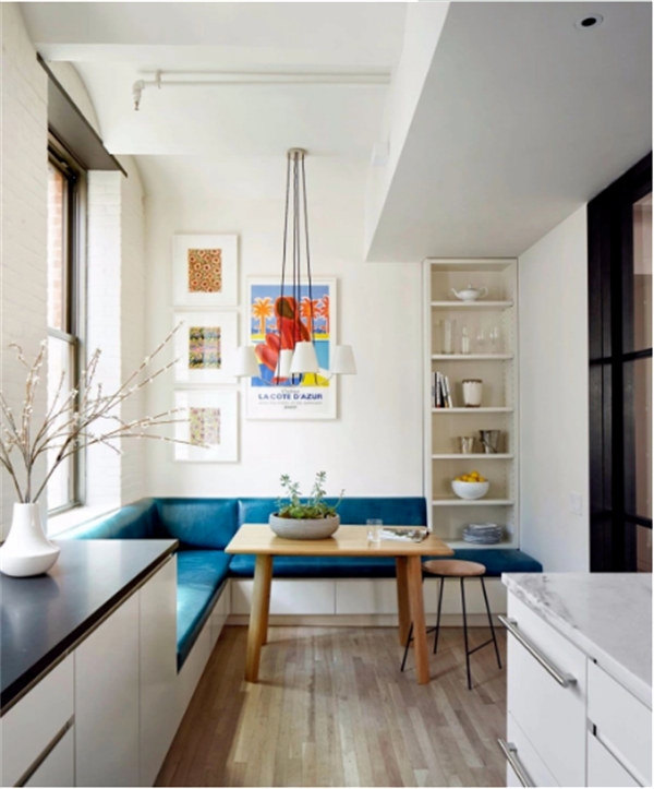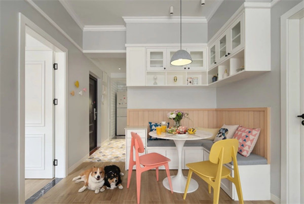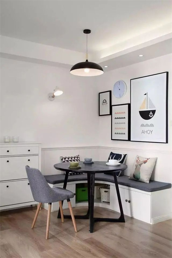 卡座+柜子,可以充分利用起家里的每一處空間,卡座和柜子組合,延展局部空間的有限功能。