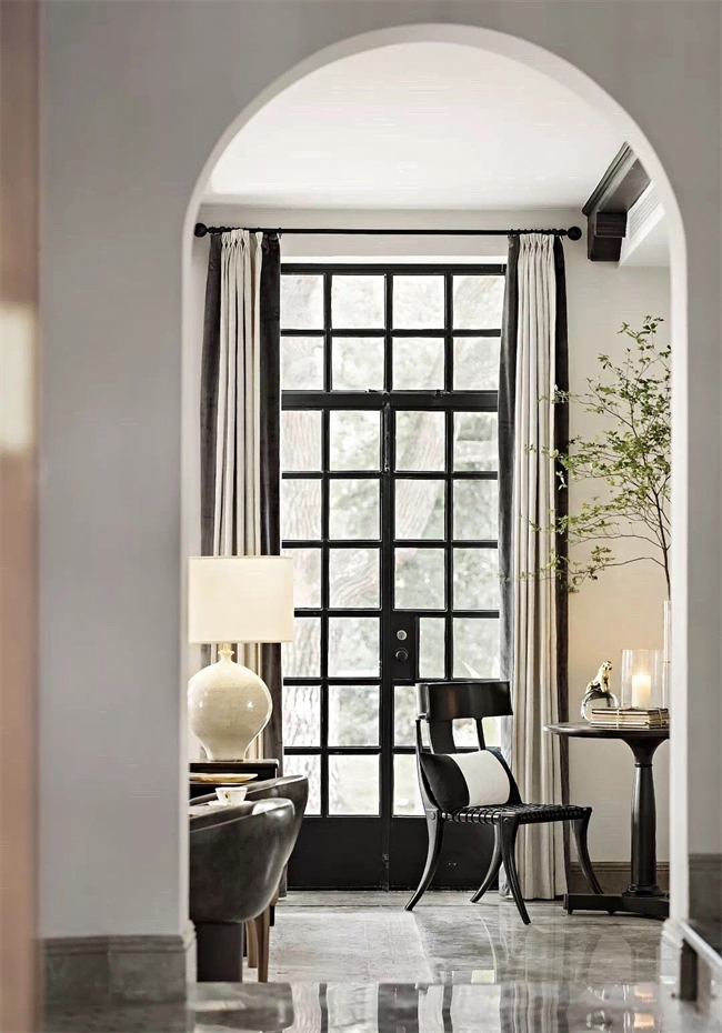 說到黑色的框架,很容易聯(lián)想到玻璃的外框,黑色作為色彩里永不落伍的室內(nèi)用色,自帶的強(qiáng)勁空間感,再加上玻璃的通透,在家里的各個(gè)空間都很適用,在使空間顯得更寬闊明亮的同時(shí),還能增強(qiáng)層次感。