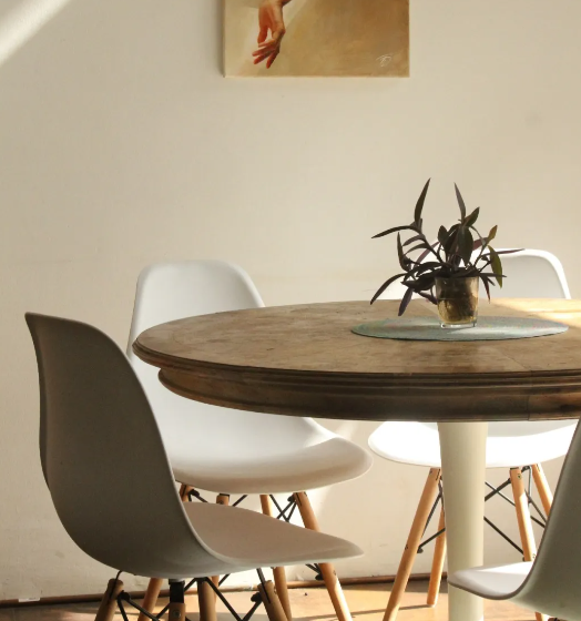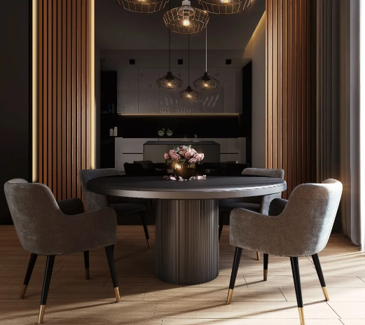 家里人口較多或常來(lái)客人,建議選用圓桌。一來(lái)方便夾菜,二來(lái)座位間隔小,互動(dòng)更容易。