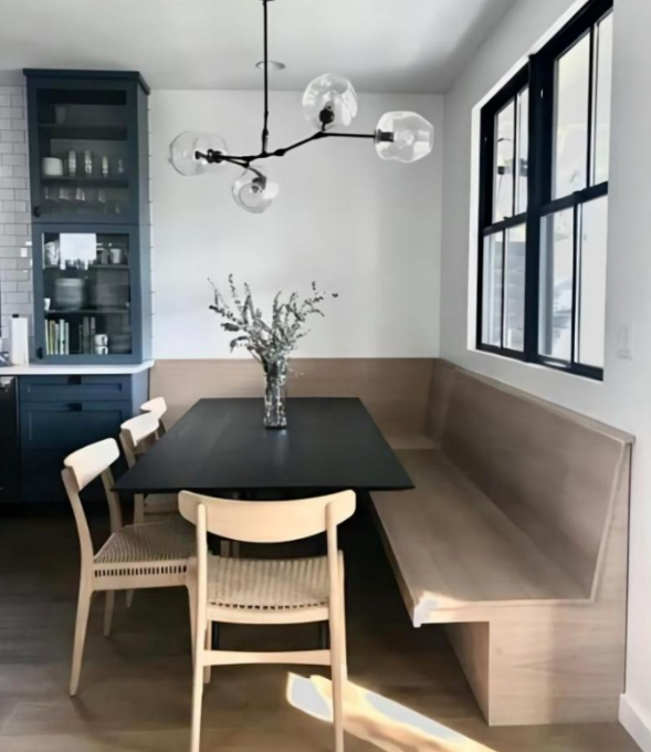 總的來說,卡座最大的優(yōu)點就是收納功能很強大,可同櫥柜、餐邊柜一體化,讓收納空間也得到最大化。而且卡座式餐廳也更有情調(diào),顯得更加浪漫,顏值較高。