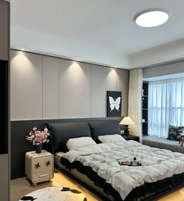 臥室不宜大面積吊頂;臥室除了主燈外還可以考慮一些輔助光源,便于休息閱讀,壁燈比臺(tái)燈更實(shí)用且不占位置,對(duì)于睡覺不喜歡亮光的朋友,窗簾一定要選擇遮光窗簾,同時(shí)建議安裝窗簾盒,可以大幅度提升臥室顏值!建議窗簾盒預(yù)留兩層,一層安裝窗紗,另一層安裝窗簾,這樣效果更好,若衣柜不到頂,也不在柜體頂部和與之相對(duì)的頂面之間采取,如“堆滿”物品,在與衣柜頂部“外邊沿“幾乎平齊的位置加設(shè)“豎直方向”的擋板等措施,則積灰情況會(huì)隨著時(shí)間日益加重,而且由于高度較高還不易清理,衣柜做到頂,一般會(huì)與頂面形成“無縫隙”的銜接,即使時(shí)間久了也不會(huì)有積灰的現(xiàn)象。