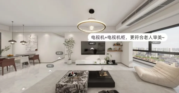 我們舍棄了常規(guī)的收納柜,使用匹配的電視+電視柜,更符合老人審美~