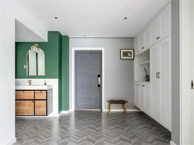 2、入戶處安置感應(yīng)燈穿衣鏡,這樣每次出門都能在此整理衣服,很是方便。而且方便晚上回家看的更清楚!