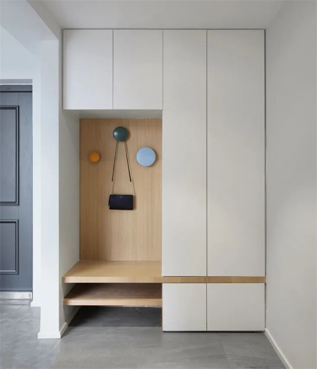 4、鞋柜處增加一個(gè)換鞋凳,穿脫更加方便,同時(shí)也能節(jié)省時(shí)間。