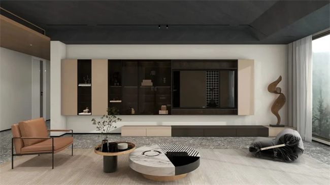 2、客廳電視柜做成懸空的樣式,這樣可以在視覺上擴(kuò)大空間感,既容易打掃又能在下方放東西。